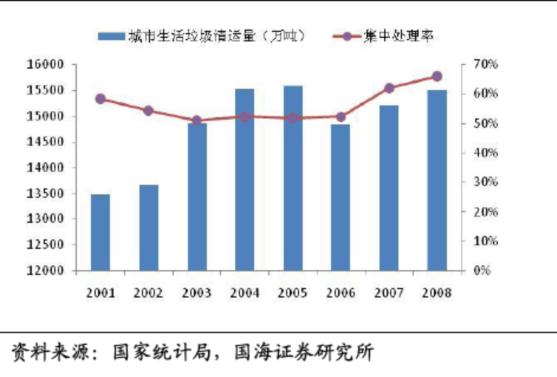 Renowned institutions EBJ environmental protection industry development was divided into four stages: the preliminary stage of development, the environmental protection infrastructure market stage of development, strengthening the regulation stage and mature period. China is now in the second stage, the environmental protection infrastructure development stage. At present China's environmental protection the main driving factors of heavy industrialization, urbanization and high pollution caused by the environmental protection requirements. Solid waste treatment industry is one of the main sector of environmental protection industry, is refers to provide a range of products and services to measure, to prevent, restrict and weaken the various problems caused by solid waste industry.Solid waste can be divided into industrial solid waste, waste and hazardous waste, while the latter is the number of proportion is very small. Between 2001 and 2009, the discharge of industrial solid waste from about 900 million tons of surge to about 2.1 billion tons, the average annual compound growth rate of 12%. Due to the discharge of waste hard statistics bureau data are given in general use garbage QingYunLiang indicators instead. Living garbage of actual quantity about QingYunLiang twice, and removed than rising trend year by year. From 2001 to 2008, urban waste output compound growth rate of 5%, and the garbage QingYunLiang growth was only 2.03%, as a whole, the trash pickup as fast as the speed of the waste, garbage siege phenomenon appears, garbage disposal problem has caused people and the government attaches great importance to. By 2007, our country of untreated urban domestic waste accumulated amount has reached more than 70, one hundred million tons, occupy land area of more than 500 million square meters, about 200 cities in the country's 660 city surrounded by rubbish. Shenzhen innovation investment group co., LTD